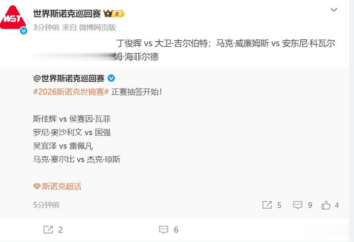北京时间4月16日下午,来到了最为激动人心的时刻,2026年世锦赛正赛的抽签仪式开始了。